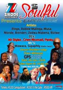 Zikode Entertainment (Pty) Ltd (Zikode) was founded in late 2012 with the vision of hosting superior quality concerts and shows initially in eMalahleni and surrounding areas and ultimately throughout South Africa. This vision was realised in July 2013, by hosting “LIVE MUSIC IN WINTER” which featured Jaziel Brothers, Siphokazi, Monde Msutwana, PYG Marimba band and Spiritual Tonics. We manage performing artists and bands, we also arrange corporate functions, with services ranging from tent hire, sound hire to venue decoration.